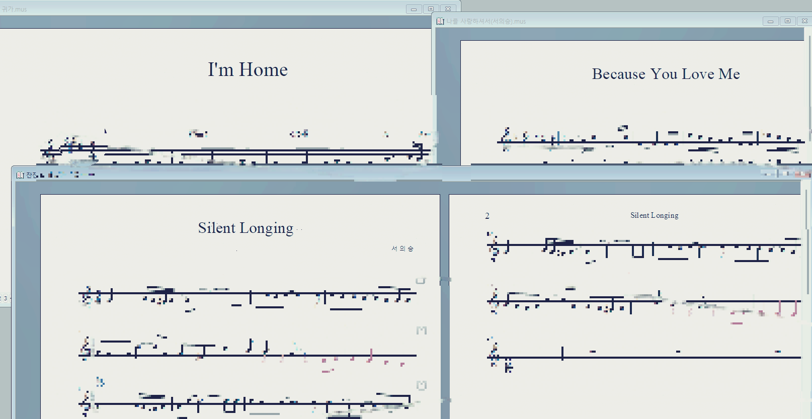 생업을 하면서 매우 틈틈히 곡을 구상하고 있다. 최근에는 악보를 캡쳐하여 AI를 작곡 교수로 활용하기도 한다. 하지만 아직 덕을 보지는 못한 것 같다. 실제 연주를 해보고 수정을 해야 할 듯 하다. 그럴 시간이 있어야 할 듯 하다. 이 3곡 외에도 동요 같은 곡이 2곡이 더 있다.